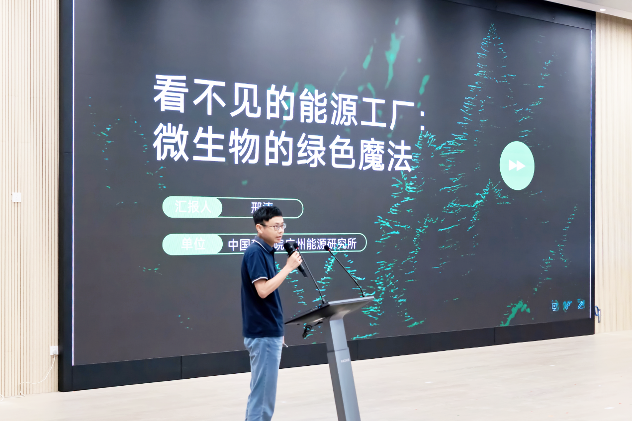 此次讲座紧扣青少年认知特点,摒弃枯燥的理论灌输,以趣味提问开篇。邢涛围绕六大核心板块展开系统讲解,全方位展现微生物的“绿色魔法”:从初识微生物,到解读产甲烷微生物产沼原理与沼气应用;从生物燃料,到介绍产油微藻的独特价值;从微生物发电,到展示科普细菌电池前沿技术;最后落脚绿色生活,倡导低碳环保。大量图片让同学们清晰感知微生物在能源领域的神奇应用,直观了解生物能源与日常生活的紧密联系。