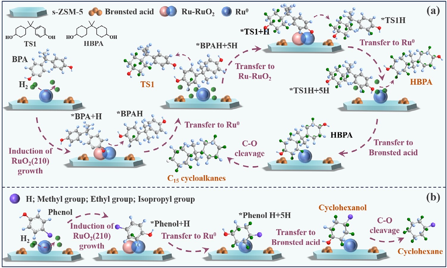 金属负载纳米片ZSM-5催化双酚A加氢脱氧反应路径