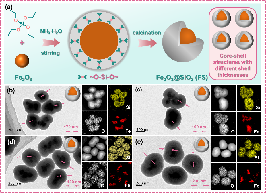Fe2O3@SiO2核壳结构载氧体的合成和结构表征。