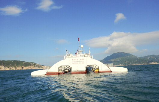 鹰式波浪能发电装置“万山号”海试进行中