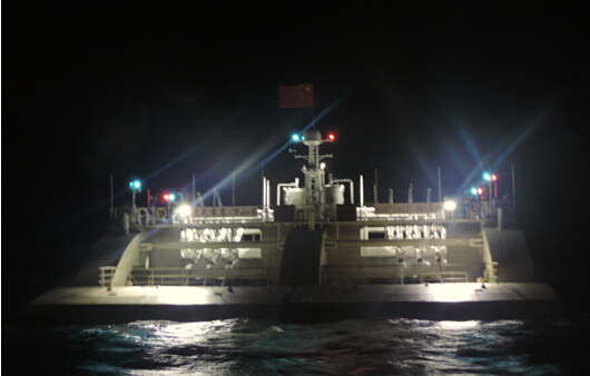 鹰式波浪能发电装置“万山号”夜间发电进行中