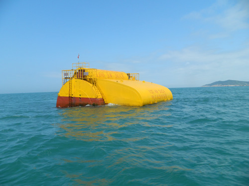 5月18日,863计划先进能源技术领域可再生能源技术领域专家组乘船到广东珠海万山岛海域,实地考察中科院广州能源研究所研建的3个波浪能装置的实海况运行情况。现场考察的专家组有科技部高新技术及产业化司孙鸿航博士、科技部高技术中心能源处副处长朱卫东、国家海洋技术中心副主任夏登文、中国科学院太阳能热利用及光伏系统重点实验室主任王志峰研究员、河南省科学院副院长雷廷宙、中国科学技术大学季杰教授和国家电网公司中国电力科学院新能源研究所所长王伟胜等,广州能源所海洋能研究中心主任游亚戈研究员陪同参观考察。