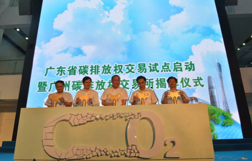 9月11日,广东省碳排放权交易试点启动暨广州碳排放权交易所揭牌仪式在广州联合交易园区举行。省委副书记、省长朱小丹宣布广东省碳排放权交易试点启动。国家发展改革委副主任解振华和省委常委、常务副省长徐少华在仪式上致辞。省委常委、广州市委书记万庆良,省政协副主席覃卫东,国家发展改革委员会,财政部有关司局,省开展国家低碳试点工作联席会议成员单位负责人,有关高校、研究机构、企业、行业协会负责人等出席仪式。中科院广州能源研究所作为广东省碳排放权交易制度设计的主要承担单位出席了仪式。