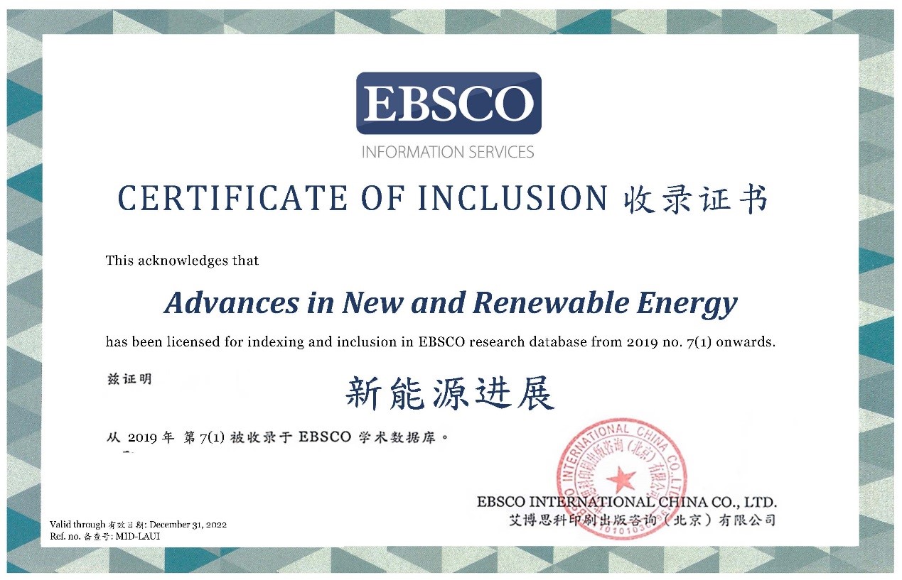 《新能源进展》被国际大型数据库EBSCO收录
